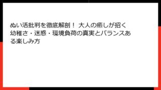 ぬい活とは? 人気の背景と批判の概要 ぬい活という言葉を耳にしたことはありますか? 近年、SNSを中心に急速に広がっているこの趣味は、ぬいぐるみをパートナーとして日常を楽しむ活動を指します。 しかし、その人気の裏側にはさまざまな批判の声も存...