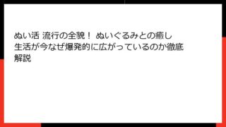 ぬい活 リラックマの魅力とは?初心者向け入門ガイド ぬい活 リラックマの世界へようこそ!この記事では、ぬい活という人気の趣味と、リラックマという可愛らしいキャラクターの組み合わせがもたらす魅力を、初心者の方でもわかりやすく詳しく解説していき...