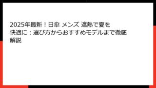 メンズ日傘の時代到来!遮熱性能で夏を快適に 近年、猛暑が続く日本の夏において、メンズ日傘が注目を集めています。 かつては女性のアイテムというイメージが強かった日傘ですが、現代では男性の健康意識の高まりやファッション性の向上により、メンズ日傘...