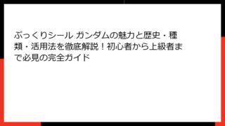 ぷっくりシール ガンダムの魅力とは?初心者でもハマる立体シールの世界 ガンダムシリーズのファンであれば、誰もが一度は手に取ったことがあるであろう「ぷっくりシール ガンダム」。 この立体的なシールは、ただの平面ステッカーとは一線を画す存在で、...