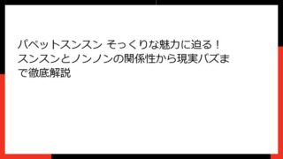 パペットスンスンとは?SNSで爆発的人気の可愛いパペットキャラクターの概要 最近、SNS上で爆発的な人気を博している可愛いパペットキャラクター「パペットスンスン」をご存知でしょうか?この青い体をした小さなパペットは、日々のふんわりとした日常...