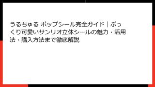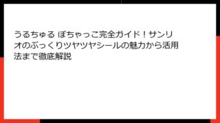 うるちゅる ウサハナとは?サンリオの可愛い立体シールで日常を癒やそう みなさん、こんにちは!今日は、サンリオの人気キャラクター「ウサハナ」と、独特のつやつやとした質感が魅力の「うるちゅるポップシール」の組み合わせについて、詳しくお話ししてい...