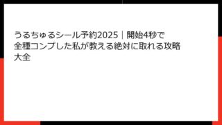 【2025年最新】うるちゅるシール予約完全攻略ガイド|即完売前に絶対抑えるべき全情報 今年のうるちゅるシールは過去最速で完売する覚悟が必要 結論から言うと、2025年分のうるちゅるシールは「過去最大級の争奪戦」になります。 昨年2024年冬...