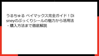 うるちゅる ベイマックスとは?Disneyの可愛いシールグッズの魅力に迫る みなさん、こんにちは。 今日は、Disneyの人気キャラクターであるベイマックスをモチーフにした特別なグッズ、「うるちゅる ベイマックス」について、詳しくお話しして...