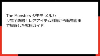 The Monsters ジモモ メルカリとは? 基本情報と人気の秘密 The Monsters ジモモ メルカリのキーワードが意味するもの 検索キーワードの三要素を分解する 「The Monsters ジモモ メルカリ」という検索キーワー...