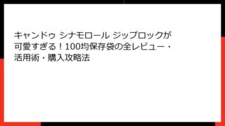 シナモロール ジップロックとは?可愛いコラボ商品の魅力に迫る こんにちは、シナモロール大好きブロガーの「シナもん」です。 今日は、検索キーワード「シナモロール ジップロック 販売店」でたどり着いた皆さんのために、特別に長大な完全ガイドをお届...