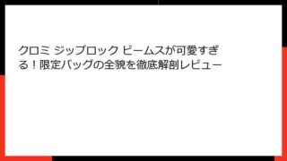クロミ愛が爆発!紀伊國屋で手に入るジップロックの可愛さとは? クロミ×ジップロックコラボが実現した奇跡の瞬間 みなさん、突然ですが「クロミ」と「ジップロック」という、まるで別世界のキャラクターと日用品が融合した瞬間を想像してみてください。 ...