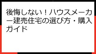 ハウスメーカー選びで後悔しないために!「やめとけ」と言われる理由と対策 「ハウスメーカーで家を建てようと思っているけど、ネットで見ると『やめとけ』って意見が多い…」 そう思っているあなた、実は、多くの人が抱える悩みです。 ハウスメーカーは、...