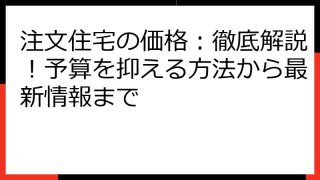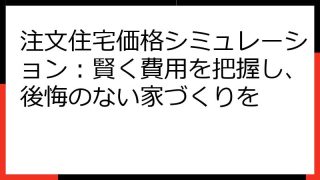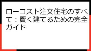 ローコストハウスメーカー選びの完全ガイド:賢く予算を抑え、理想のマイホームを実現! 夢に描いたマイホームを、予算内で実現したい。 そんなあなたは、ローコストハウスメーカーという選択肢を考えているかもしれません。 しかし、ローコスト住宅には、...
