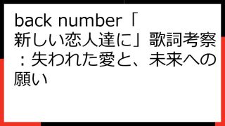 back number「新しい恋人達に」歌詞考察:失われた愛と、未来への願い、そして「君」への祈り back numberの「新しい恋人達に」は、失恋の痛みと、新しい恋への切ない願い、そして未来への希望が複雑に絡み合った、印象的な楽曲です。...