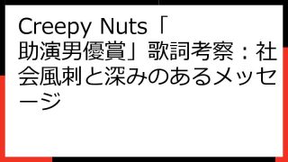 Creepy Nuts Creepy Nuts「助演男優賞」歌詞考察:社会風刺と深みのあるメッセージ