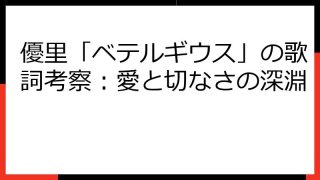 優里「かごめ (Frame)」:社会への痛烈な批判と心の叫びを解き明かす歌詞考察 優里の楽曲「かごめ (Frame)」は、2020年にリリースされた、インディーズ時代の代表曲です。 シンプルながらも力強いメロディーと、社会への痛烈な批判、そ...
