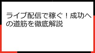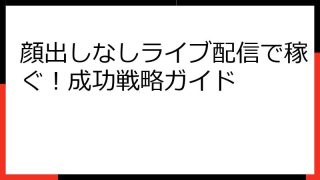 顔出しなしで稼ぐ!ライブ配信成功ガイド - 初心者向け収益化戦略 顔出しなしでライブ配信を始めたいけど、どこから手をつければいいか分からない…。 そんな悩みをお持ちのあなたへ、収益化に繋がる成功ガイドをご紹介します。 本記事では、顔出しなし...