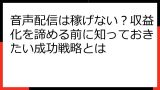 あなたは、自分の声で収入を得たいと思ったことはありませんか?。