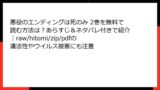 - 中断や閉鎖: 海賊版サイトは当局の摘発により突然閉鎖されることがあり、途中で読めなくなるリスクがあります。物語のクライマックスでアクセスできなくなるのは、ファンにとって大きなストレスです。