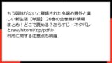 | 業界全体へのダメージ | 海賊版の蔓延は、漫画業界全体の収益を圧迫し、新作の制作や新人の育成が難しくなります。結果として、読者が楽しめる作品の数が減る恐れがあります。 |