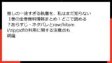 このような法的リスクは、読者にとって予期せぬトラブルを引き起こす可能性があり、軽視できません。