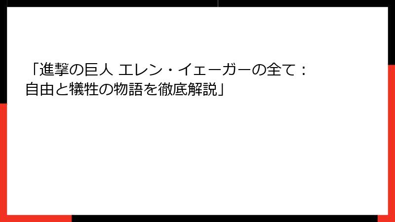 エレンに興味がある方、または『進撃の巨人』の世界をより深く理解したい方にとって、この記事は包括的なガイドとなるでしょう。
