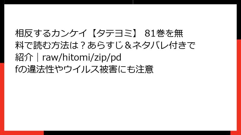 「相反するカンケイ【タテヨミ】」は、Oryu先生による人気のBLウェブトゥーンで、情熱的なストーリーと美しいイラストが多くのファンを魅了しています。しかし、この作品をraw、hitomi、zip、pdf、漫画バンクなどの海賊版サイトで読むことは、重大なリスクを伴います。この記事では、海賊版サイトを利用することの危険性を詳しく解説し、なぜ正規のプラットフォームで読むべきかをブログ形式で紹介します。法的、倫理的、技術的な観点から、読み応えのある内容をお届けします。