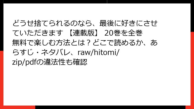 海賊版サイトのリスクを避けるためには、合法的なプラットフォームを利用することが推奨されます。「どうせ捨てられるのなら、最後に好きにさせていただきます」を安全に楽しむための方法を以下にまとめます。