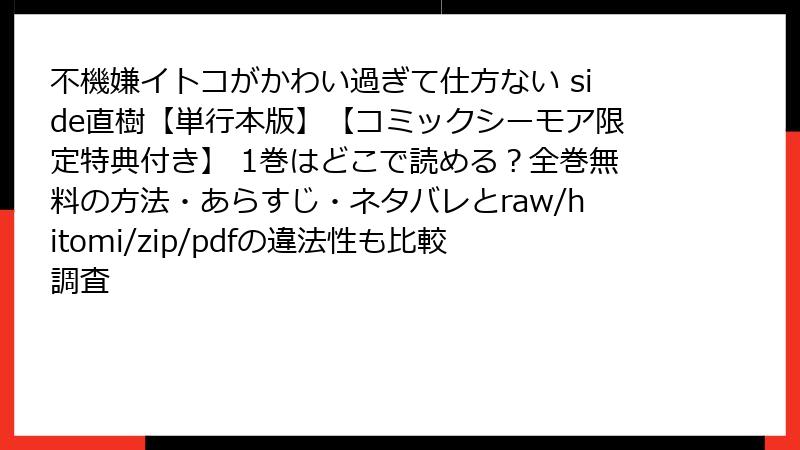 こんにちは、BL漫画ファンの皆さん! 高比良りと先生の人気スピンオフ作品「不機嫌イトコがかわい過ぎて仕方ない side直樹【単行本版】【コミックシーモア限定特典付き】」1巻は、直樹視点の甘々同棲生活が魅力の1冊。電子書籍版は便利で特典付きのものも多く、どこで読めるか気になりますよね。この記事では、指定されたサービス(コミックシーモア、ブックライブ、めちゃコミック、ピッコマ、LINEマンガ、まんが王国、ebookjapan、Renta!)を中心に、配信状況を詳しく解説します。最新の情報に基づき、試し読みや特典の有無も含めて読み応えのある内容でお届け。合法的に楽しむための参考にしてくださいね!