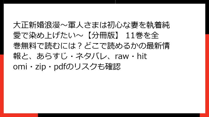 大正新婚浪漫~軍人さまは初心な妻を執着純愛で染め上げたい~【分冊版】11巻は、ナガトカヨ先生の原作と砂川雨路先生の美しい作画が織りなす、大正時代を舞台にした溺愛ロマンスの最新章。この巻では、ヒロイン・楓の秘密が危機に瀕し、軍人である夫・雪禎の執着と純愛がさらに深まる展開が満載です。以下、ネタバレ全開で11巻の詳細なあらすじと見どころをブログ形式で徹底解説! まだ読んでいない方は、ネタバレを避けたい場合、ここで引き返すことをおすすめします。さあ、物語の核心に迫りましょう!