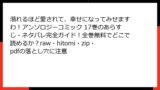 - 海賊版サイトで漫画を読むリスク大警報! raw/hitomi/zip/pdf/漫画バンクなどの危険性を徹底解説