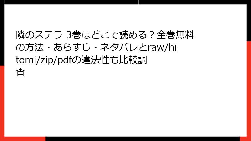 3. 海賊版サイトで漫画を読むリスク:『隣のステラ』を例に徹底解説