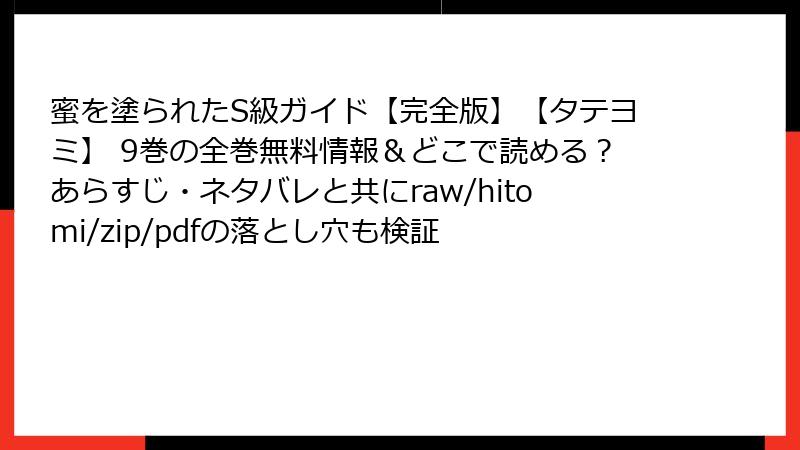 襲撃の裏には、ガイド協会の陰謀が絡んでおり、アンダンテがノアピを「実験場」として利用していることが判明。メンバーたちのケガは、能力強化のための自己犠牲だったのです。新はポリシーを破り、アンダンテに完全ガイディングを施しますが、この過程で二人の精神がリンクし、アンダンテの孤独な過去(家族を失ったトラウマ)が共有されます。BL要素が強く、親密な接触シーンは完全版ならではの過激さで描かれ、ファンを熱狂させます。 9巻の魅力は、キャラクターの心理描写の豊かさにあります。新はクールな外見とは裏腹に、トラウマから生まれる孤独を抱え、ノアピでの生活を通じて成長します。ネタバレとして、アンダンテとのリンクで新は「自分はただの道具ではない」と気づき、ポリシーを少しずつ緩めていきます。一方、アンダンテはS級エスパー以上の力を持ちながら、常に不安定な精神状態で、新のガイディングに依存。実は彼の「蜜のような視線」は、純粋な愛情から来ており、原作小説ではアンダンテの視点でさらに詳しく語られますが、漫画版では視覚的な執着表現が強調されています。 サブキャラクターのレオンは、コミカルに描かれつつ、忠実な仲間として新を支え、負傷シーンで感動を呼ぶ。また、新たな敵役の遊心は、S級ガイドとして新をライバル視し、協会のスパイ的な役割を匂わせます。この巻で遊心の嫉妬心がネタバレされ、次巻への伏線となります。全体として、依存と信頼のバランスがBLの醍醐味を体現しています。 9巻のクライマックスは、完全ガイディングのシーン。新とアンダンテの精神が融合し、互いの記憶が交錯する中で、アンダンテの真実が明らかになります。ネタバレとして、アンダンテは新を「運命のガイド」と信じ、ノアピを建てたのも新を待つためだったのです。この告白は、涙腺を刺激する感動的なもので、BLファンにはたまらないロマンスのピーク。リンクの後、新は一時的に能力を失いかけますが、アンダンテの支えで回復し、二人はキス寸前の親密さを共有します。 巻末の結末では、ガイド協会の調査が本格化し、遊心が新を誘惑するシーンでクリフハンガー。原作小説ではこの後さらに陰謀が深まりますが、漫画版9巻はここで一区切りつき、次巻への期待を高めます。この巻は、アクション、ロマンス、ドラマのバランスが絶妙で、完全版の過激シーンがストーリーをより濃密にしています。ネタバレを読んだ後で本編を振り返ると、細かな伏線が見えて面白さ倍増です! 「蜜を塗られたS級ガイド」9巻は、シリーズのファン必見の転換点。ガイドバースの設定を活かした心理戦と甘いBL要素が融合した傑作です。まだ読んでいない方は、ぜひ完全版からチャレンジを! 人気BLファンタジー漫画「蜜を塗られたS級ガイド」をはじめとした作品を、raw、hitomi、zip、pdf、漫画バンクなどの海賊版サイトで読むのは、便利そうに見えて実は大きな危険が潜んでいます。これらのサイトは、著作権を侵害した違法アップロードされたコンテンツを提供するもので、利用者は法的・セキュリティ・経済的なリスクにさらされます。本記事では、そんな海賊版サイトのリスクを詳しく掘り下げ、なぜ避けるべきかをブログ形式で解説します。複数の視点から読み応えのある内容にまとめましたので、参考にしてください。海賊版利用は推奨しませんが、知識として知っておくことが重要です。 海賊版サイトで漫画を読む行為は、著作権法に違反する可能性が高いです。日本では、2020年の著作権法改正により、違法にアップロードされた漫画をダウンロードするだけでも刑事罰の対象となる場合があります。特に、rawや漫画バンクのようなサイトは、出版社や作者の権利を侵害した海賊版コンテンツを扱っており、利用者が知らずに違法ダウンロードを繰り返すと、罰金や損害賠償のリスクが生じます。 例えば、漫画バンクは過去に閉鎖されたものの、後継サイトが次々と登場し、利用者を誘導しています。hitomiやzip形式のファイルを提供するサイトも同様で、2025年現在、取り締まりが強化されており、警察の摘発事例が増えています。作者の収入を奪うだけでなく、社会全体のクリエイティブ産業を損なう行為です。無視できない法的リスクを甘く見ると、後悔する羽目になるかもしれません。 海賊版サイトの最大の危険は、セキュリティ面にあります。rawや漫画ロウ、pdf/zipファイルを提供するサイトは、広告やポップアップが氾濫し、マルウェアやウイルスが仕込まれているケースが多発しています。2025年の報告でも、こうしたサイト経由の感染事例が急増しており、スマホやPCが被害を受けています。例えば、漫画バンクの後継サイトでダウンロードしたzipファイルを開くと、ランサムウェアが発動し、データが暗号化されるトラブルが報告されています。 hitomiのようなエロティックコンテンツを含むサイトは特にリスクが高く、フィッシング詐欺の温床となっ