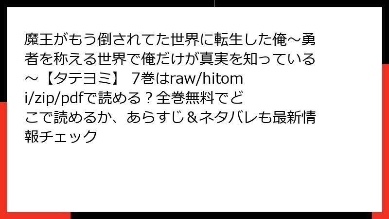 - 『魔王がもう倒されてた世界に転生した俺~勇者を称える世界で俺だけが真実を知っている~【タテヨミ】』7巻 レビュー・口コミ・評判を徹底解説