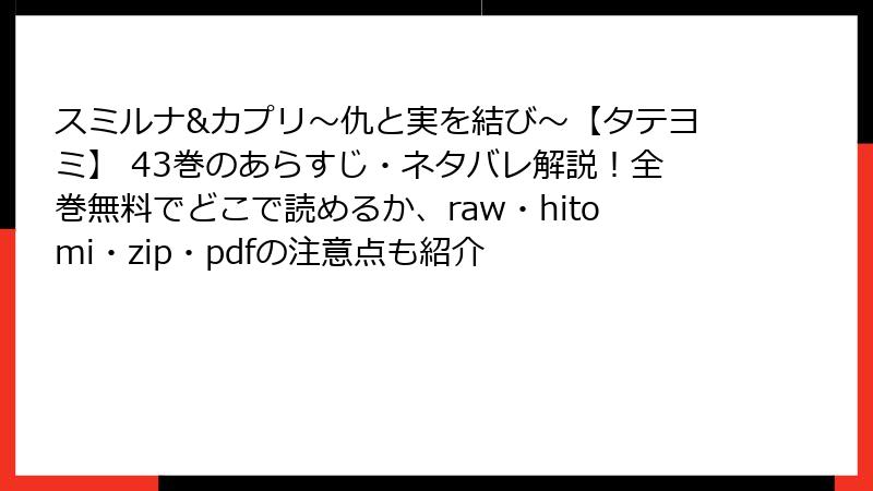 『スミルナ&カプリ~仇と実を結び~【タテヨミ】43巻』レビュー・口コミ・評判:ファンが語る魅力と反響