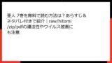 | zip/pdf形式サイト (MANGA ZIP, Rawkumaなど) | 圧縮ファイルで全巻ダウンロード、英語表記多め | ファイル開封時のウイルス感染、法的ダウンロード違反 |