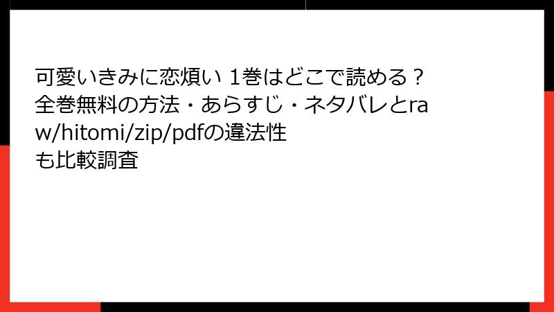 『可愛いきみに恋煩い』を海賊版サイトで読むことは、法的、倫理的、技術的なリスクを伴う危険な行為です。違法ダウンロードによる処罰、作者や業界へのダメージ、デバイスや個人情報への脅威、そして満足度の低い読書体験。これらのリスクを冒すよりも、正規版を購入して安心かつ快適に作品を楽しむ方が、ファンとしての喜びも大きいはずです。まことと葵のドキドキする恋物語を、最高の品質で味わいましょう! 漫画を愛するなら、正しい選択で作品と作者を支え、未来の名作を守っていきましょう!