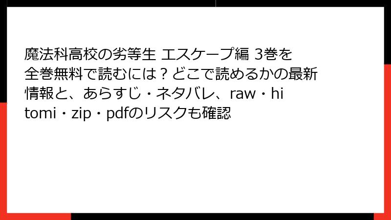 『魔法科高校の劣等生 エスケープ編』のような人気漫画を、無料で手軽に読みたい気持ちはわかります。でも、raw、hitomi、zip、pdf、漫画バンクなどの海賊版サイトを利用するのは、想像以上のリスクを伴います。これらのサイトは、著作権を侵害した違法コンテンツを提供しており、利用者は法的・セキュリティ・経済的なダメージを被る可能性が高いのです。本記事では、そんな海賊版サイトのリスクを、複数の観点から詳しく掘り下げます。ブログ形式で読みやすくまとめ、箇条書きや表を活用して具体例を交えつつ、なぜ避けるべきかを解説。安全な代替手段も最後に触れますので、参考にしてください!