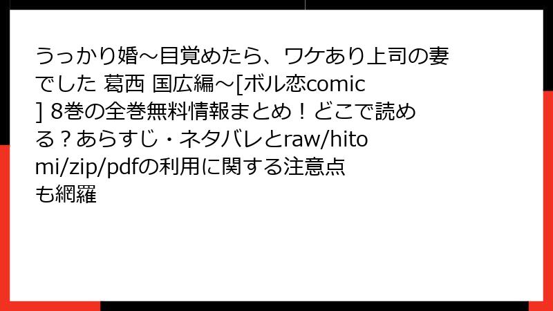 ![『うっかり婚~目覚めたら、ワケあり上司の妻でした 葛西 国広編~[ボル恋comic] 8巻』の電子書籍版が読めるサービスを徹底調査!](https://jfi23hunffs22f.conohawing.com/for_images_wp/wp-content/uploads/2025/09/article_20250916_130015_800.jpg)