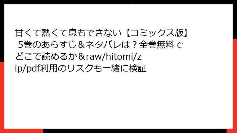 『甘くて熱くて息もできない』は、蜂巣による人気BL漫画で、絢斗と理央の魅力的な恋愛物語が多くのファンを惹きつけています。しかし、このような人気作品をraw、hitomi、zip、pdf、漫画バンクなどの海賊版サイトで読むことは、重大なリスクを伴います。この記事では、海賊版サイトを利用することの危険性を、法的、倫理的、技術的な観点から詳しく解説します。以下、具体的なリスクをブログ形式で紹介し、なぜ正規の方法で漫画を楽しむべきかを明らかにします。