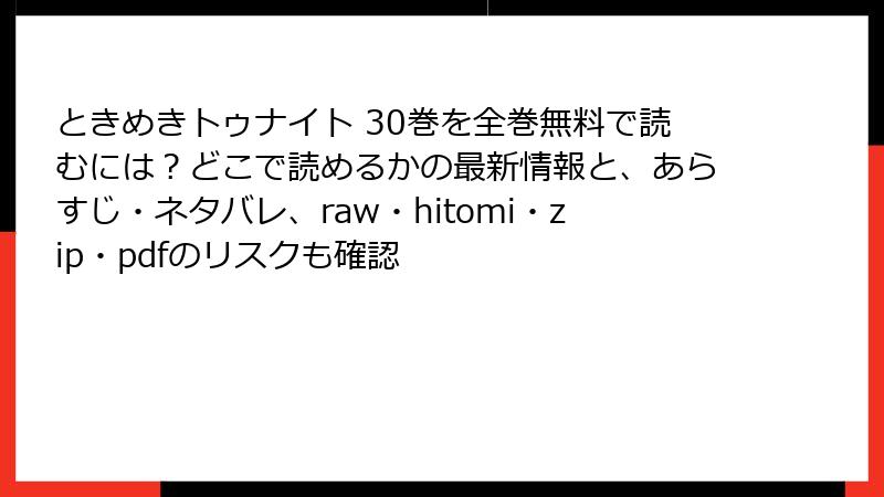 こんにちは、漫画ファンの皆さん! 今日は、池野恋先生の名作『ときめきトゥナイト』のような素敵な作品を、海賊版サイト(raw、hitomi、zip、pdf、漫画バンクなど)で読むことのリスクについて、詳しくお話しします。無料で手軽に読めると魅力的に見えますが、実際には法的・セキュリティ・倫理的な落とし穴が満載です。この記事では、そんなリスクを多角的に掘り下げ、なぜ正規ルートを選ぶべきかをブログ風に解説。ネタバレなしで、皆さんの安全な漫画ライフを守るための参考にしてください! それでは、早速本題へ。
