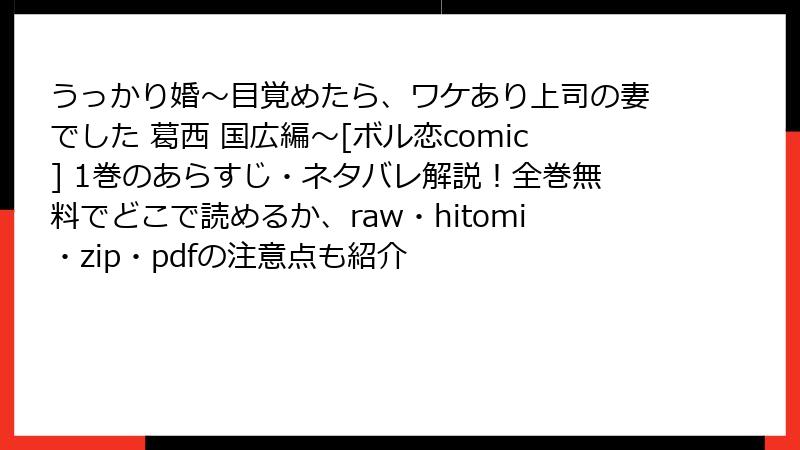 ![うっかり婚~目覚めたら、ワケあり上司の妻でした 葛西国広編~[ボル恋comic] 1巻 ネタバレ詳細レビュー](https://jfi23hunffs22f.conohawing.com/for_images_wp/wp-content/uploads/2025/09/article_20250919_130010_806.jpg)