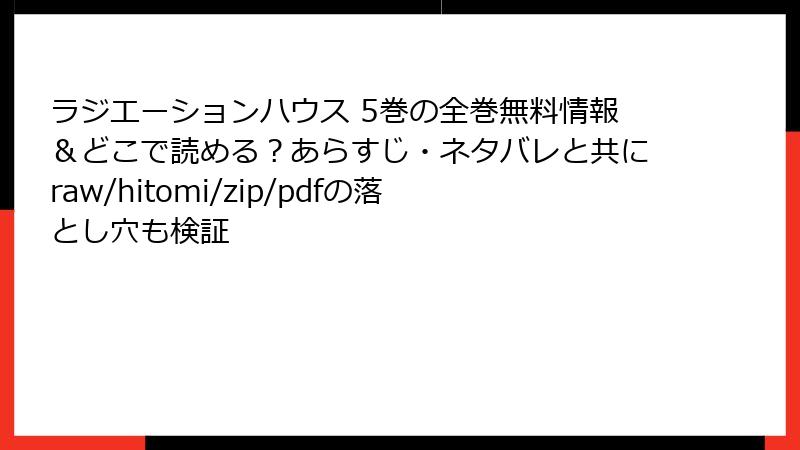 ラジエーションハウス 5巻の全巻無料情報&どこで読める?あらすじ・ネタバレと共にraw/hitomi/zip/pdfの落とし穴も検証