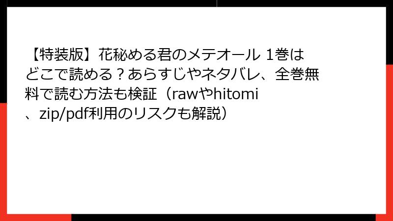 raw/hitomi/zip/pdf/漫画バンクなどの海賊版サイトは、法的罰則、ウイルス感染、倫理的後悔のトリプルパンチ。【特装版】花秘める君のメテオールのような名作を、心置きなく楽しむなら、正規ルート一択です。2025年の今、業界はファン支援を強化中――一緒にクリーンなマンガ文化を育てましょう。皆さんの体験談やおすすめ合法サイト、コメントでシェアしてください♪