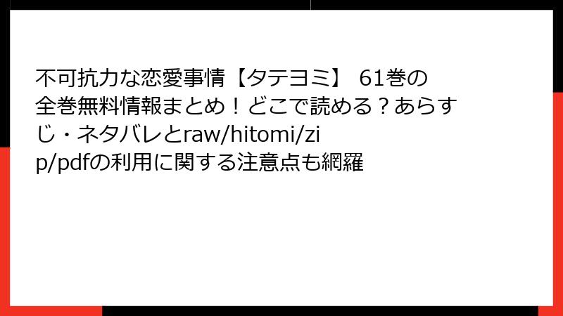 『不可抗力な恋愛事情【タテヨミ】』61巻のレビュー・口コミを総括すると、圧倒的な支持率で「シリーズ最高峰」の評価。ポジティブな熱狂がネガティブを上回り、BLファン層の拡大に貢献しています。星4.8の裏側には、作者の丁寧な心理描写と美しいアートワークが光り、Xのトレンドからもその影響力を実感。改善点を活かした次巻が待ち遠しい! あなたのお気に入りポイントは? 合法サイトでチェックして、感想をシェアしよう。漫画の魅力は、みんなの声でさらに輝きますよ♪