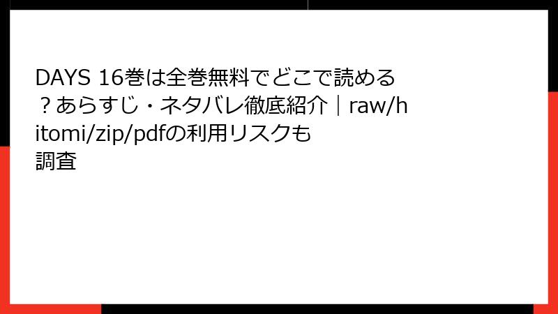 - ダウンロードの違法性: ZIPやPDF形式で『DAYS』の巻を落とすと、即座に著作権法違反。2021年以降、個人ユーザーに対する摘発事例が報告されており、初犯でも警告や罰金が課せられるケースあり。