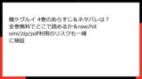 - ダウンロードの危険:rawやhitomiからファイルを落とすと、即座に違法複製。漫画バンク後継サイトでは、1冊あたり数万円の損害賠償請求の事例あり。