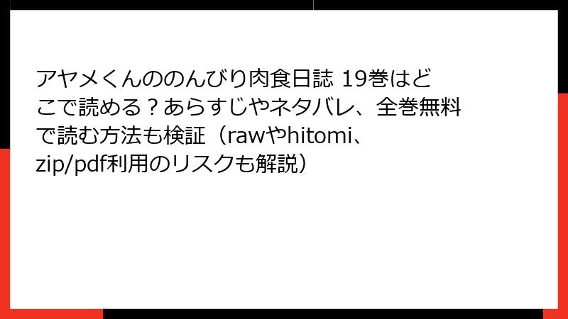 たとえば、漫画バンクの閉鎖後、類似サイトにアクセスしたユーザーがマルウェアに感染し、PCのデータが全削除されたという報告も。『アヤメくんののんびり肉食日誌』を安全に読むためにも、こうしたリスクは避けたいところです。