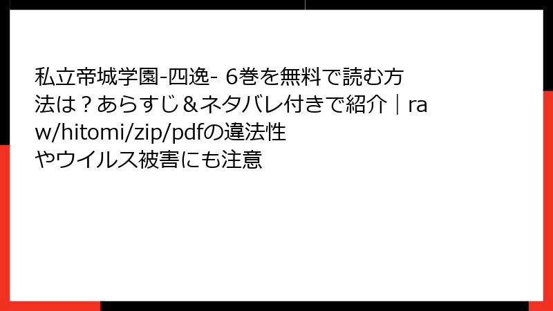 『私立帝城学園-四逸-』を海賊版サイトで読むリスク:知っておくべき危険性
