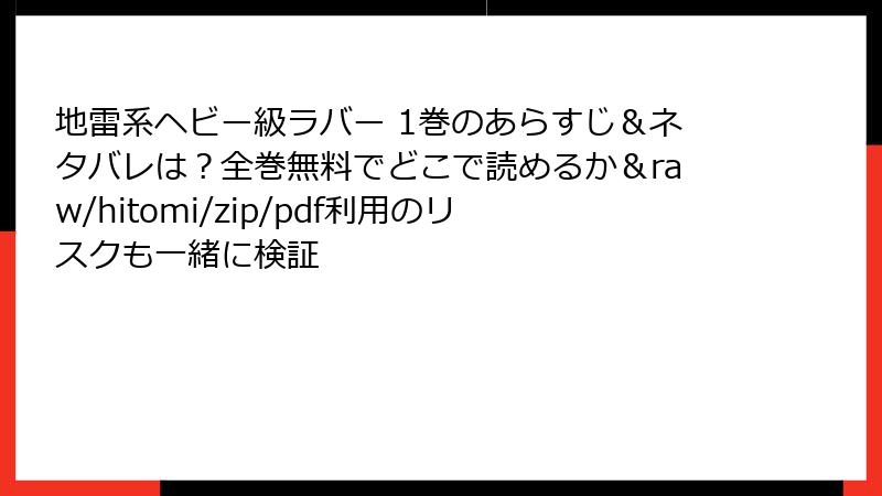 タグを使ってわかりやすく、読み応えのある内容でお届けします。『地雷系ヘビー級ラバー』を正規ルートで楽しむための第一歩として、ぜひ最後まで読んでください! 法的なリスク:著作権侵害による刑事・民事責任
