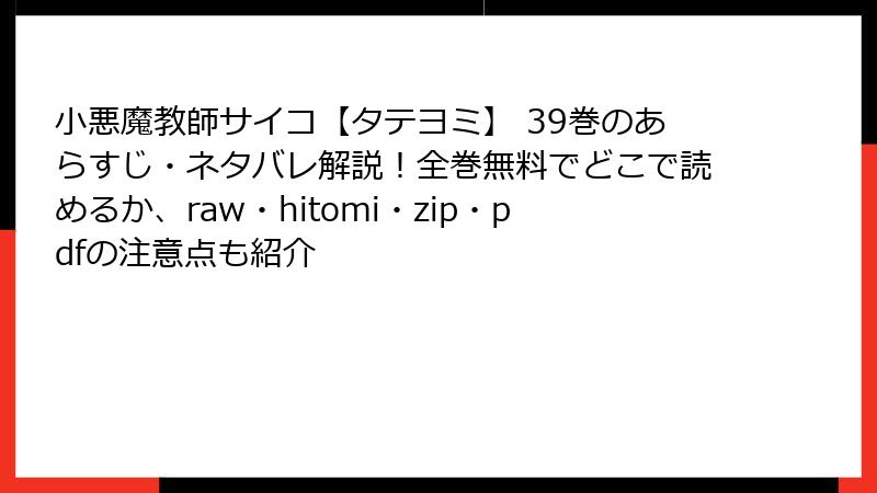 注意: 配信状況やキャンペーンは変更される可能性があるため、購入前に各サービスの最新情報を確認してください。海賊版サイト(raw、hitomi、zip、pdfなど)は法的・技術的リスクが高いため、絶対に避け、正規のサービスを利用して『小悪魔教師サイコ』を応援しましょう!