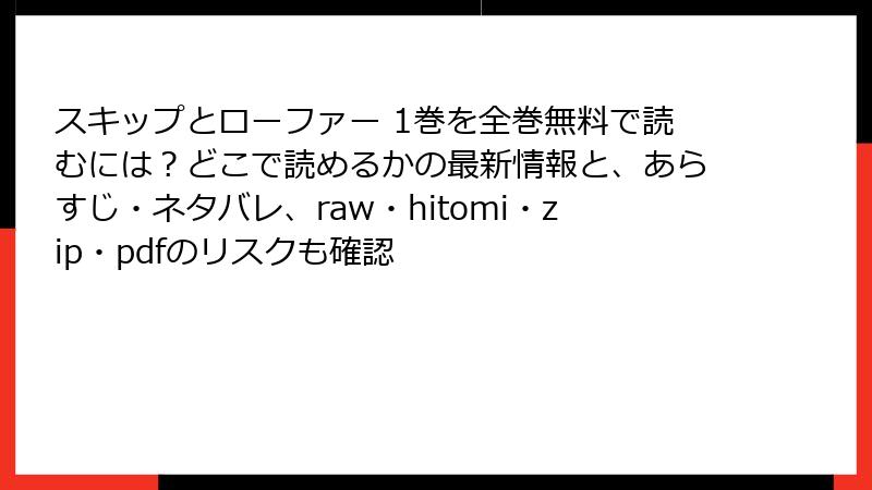 『スキップとローファー』は、高松美咲による心温まる青春漫画で、講談社の月刊アフタヌーンで連載中です。しかし、無料で漫画を読める「raw」「hitomi」「zip」「pdf」「漫画バンク」などの海賊版サイトを利用することには重大なリスクが伴います。この記事では、海賊版サイトで『スキップとローファー』を読むことの危険性を、法的、倫理的、技術的な観点から詳しく解説します。安全に漫画を楽しむための知識を深めましょう。