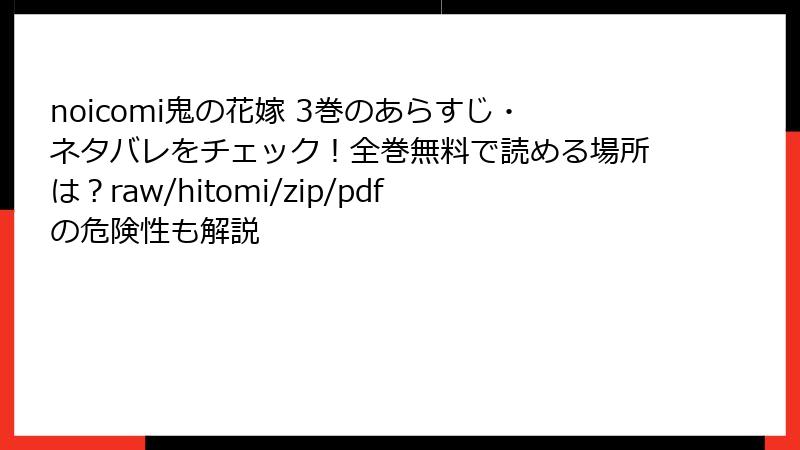 『鬼の花嫁』3巻をraw、hitomi、漫画バンクなどの海賊版サイトで読むことは、法律違反、倫理的問題、セキュリティリスク、品質低下など、多くの危険を伴います。これらのリスクは、単に「無料で読める」メリットを大きく上回るものです。好きな作品を長く楽しむためにも、作者や業界を支える正規購入を選びましょう。柚子と玲夜の感動的な物語を、クリアな画質と安心の環境で味わうのが、ファンとしての正しい選択です。あなたは『鬼の花嫁』をどうやって楽しみますか?正規版を手にとって、物語の世界に浸ってみませんか?次回のマンガレビューもお楽しみに!
