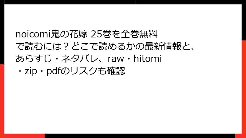 2021年の著作権法改正により、違法ダウンロードへの取り締まりが強化されました。『鬼の花嫁』25巻をrawやpdfでダウンロードすることは、知らず知らずのうちに犯罪に加担する行為になりかねません。安全に読むなら、公式の電子書籍プラットフォームや書店を利用しましょう。